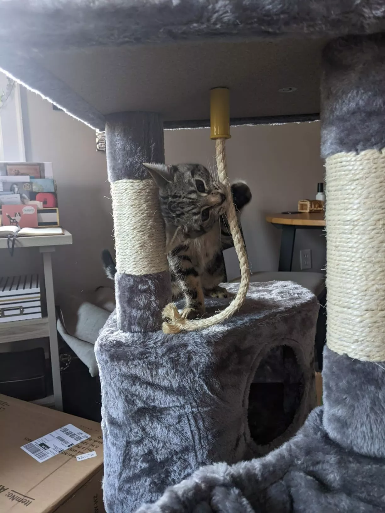 • Scratching Posts: Wrapped in sisal rope, these posts satisfy your cat’s scratching needs, protecting your furniture from damage.